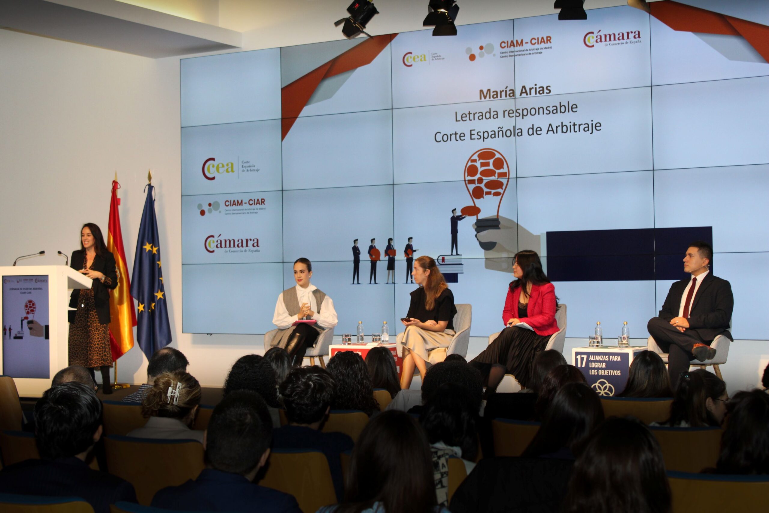 La sesión ha sido inaugurada por María Arias, letrada responsable de la Corte Española de Arbitraje (CEA), institución fundadora de CIAM-CIAR, que ha dado la bienvenida a más de 60 alumnos procedentes de distintos centros educativos, como la Universidad Carlos III de Madrid, la Universidad CEU San Pablo, ICADE, IE University y la Universidad Complutense de Madrid.